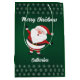 Traga alegria para seu presente de Natal com este saco de presentes de Natal com um Papai Noel alegre! O rico fundo verde, o padrão branco de flocos de neve, e o sorridente Natal do Pai instantemente estabeleceram um humor festivo e lúdico. Perfeito para aqueles que amam designs alegres e alegres e querem que seus presentes brilhem com espírito de feriado. Com a personalização, você pode adicionar um nome para um detalhe extra ponderado, transformando cada presente em algo único. Seja um pequeno presente ou uma surpresa maior, este saco dá ao seu presente um encanto moderno, mas tradicional.