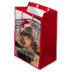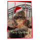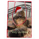 Esta bolsa de presente adorável mostra meu gato siberiano grande e bonito chamado Kimber vestindo um chapéu de Papai Noel. Pegou o aliciamento, Kimber tem um olhar surpreso no rosto. Suas pernas estão espalhadas, seus pés grandes estão grudados nas laterais dele, e sua longa cauda lisa é esticada na frente dele. Com as palavras, "Feliz Natal", este maravilhoso saco de presentes certamente irá aumentar a doação de presente e receber alegria neste feriado.