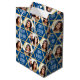 Sacos de presentes personalizados são uma forma excelente de adicionar um toque pessoal à sua dádiva! Este design de na moda apresenta um padrão estelar completo, exibindo duas das suas fotos favoritas junto com o nome do receptor. A mensagem de "Parabéns" pode também ser alterada ou adaptada a diferentes ocasiões. Este design versátil é ideal para a família e amigos comemorarem aniversários, feriados, Chanucá, Bar ou Bat Mitzvahs, graduações, mudarem-se para uma nova casa, e muito mais! Ele vem com um acabamento mate ou brilhante. Cores: azul marinho, branco e cor dourada.