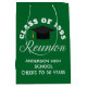 Sacos de presentes de festa de reunião de classe personalizada em verde e branco para um segundo grau, faculdade ou universidade. Personalize com seu nome de escola e sua classe de graduação sob a elegante caligrafia para presentes personalizados de celebração de alunos excelentes.