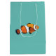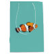 Saco médio para presentes de peixe de palhaço projetado por Nisha Prabhu. Faça uma brisa de presente com o nosso charmoso saco de peixe-palhaço. Apresentando uma design deliciosa de peixes palhaços brincalhões nadando, esta bolsa de presentes certamente trará um sorriso para o rosto de qualquer um. Suas visuais atraentes chamam atenção instantaneamente e fazem seu presente se destacar do resto. Esteja você participando de uma festa de aniversário, de um chá de fraldas, ou de uma celebração especial, nossa Bolsa Média de Presente de Peixe-Palhaço adiciona um toque extra de charme e elegância à sua experiência de doação de presente. Não só o nosso saco de presentes é visualmente atraente, como também reflete o seu amor pela vida marinha e adiciona um toque pessoal aos seus presentes. É a escolha perfeita para quem aprecia a beleza do oceano e quer compartilhar essa alegria com os outros. Então, faça um salto no seu próximo evento de doação com nosso Saco de Presente Médio de Peixe-Palhaço. Peça o seu hoje e deixe o receptor mergulhar num mundo de entusiasmo e maravilha!