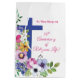 Flores laranja, lilás, rosa e azuis com folhas verdes ao lado de uma grande cruz azul, todas em branco. Um belo presente, lembrança, doação ou festa desenhada, essencial para felicitar uma boa freira por seu 50º aniversário da vida religiosa. Diga-lhe que deseja o melhor e que seu bom e generoso trabalho é muito apreciado.