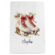 Saco de presente bonito com um par de skates de gelo com cadarços de arco vermelho e verde. Personalize com o nome do patinador de gelo.