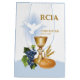 Que maravilhoso presente de parabéns, lembrança, doação e festa essencial sobre a RCIA! Uma bela ilustração de símbolos sacramentos, uvas, pão, trigo, cálice e pomba branca que representa o Espírito Santo. É preciso felicitar alguém especial pela sua iniciação.