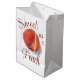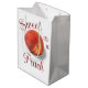 Mostre seu amor pelo verão com esta bolsa de presente de tema de pêssego. Este design de pêssego doce e veloz apresenta tons quentes e brilhantes de blush, escarlate, âmbar, coral e lilac. Personalize alterando ou removendo o texto. Criei este padrão de uma imagem na minha pintura acrílica original.