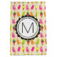 Saco de presente com um doce padrão de Verão, contendo picolés e cones de sorvete em aquarelas vibrantes coloridas. Escreva seu dentro de monograma personalizado com uma forma de flor branca.