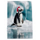 Pinguim bonito vestindo um boné de Papai Noel em um iceberg.