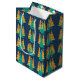 Sacola Para Presentes Média Pinheira-pinheiro azul simples retro padrão