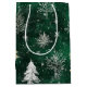Sacola Para Presentes Média Pinheiros Dourados Prateados Flocos de Neve Caçado