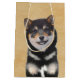 Sacola Para Presentes Média Pintura de Shiba Inu (Preto e Latão) - Arte Canina