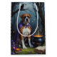 Entra numa noite mágica de Halloween com esta pintura de óleo balbuciosa apresentando um adorável filhote de bruxa, sentado ao lado de um caldeirão borbulhante numa floresta sombria. Cercado por poções brilhantes, livros ortográficos antigos e faíscas mágicas cintilantes, a cena é cheia de mistério e charme. Texturas vítreas ricas e matizes profundos do Halloween criam uma vibração acolhedora e encantada perfeita para amantes da estação assustadora.