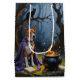 Entra numa noite mágica de Halloween com esta pintura de óleo balbuciosa apresentando um adorável filhote de bruxa, sentado ao lado de um caldeirão borbulhante numa floresta sombria. Cercado por poções brilhantes, livros ortográficos antigos e faíscas mágicas cintilantes, a cena é cheia de mistério e charme. Texturas vítreas ricas e matizes profundos do Halloween criam uma vibração acolhedora e encantada perfeita para amantes da estação assustadora.