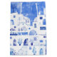 Pintor de aquarela azul e branca da paisagem contemporânea da vila de Oia na ilha grega de Santorini, onde eu gostaria de estar agora. Arte original de Nic Squirrell.