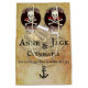 Para a sua equipe alegre num casamento temido de piratas. Apresentando um Jolly Roger correspondente para a Noiva Pirata e o Groom Pirata em um antigo pergaminho decorado com um polvo ao redor de cada um.Personalize com os nomes da noiva e noiva e a data.Savvy?