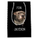 Este saco de presentes personalizado é perfeito para todas as ocasiões. Mostra uma fotografia adorável do nosso super afetuoso Blue Nose Pitbull chamado Sarge. Sargento está olhando para você com seu rosto fofo e vestindo seu capuz favorito que o mantém quente no inverno. A ocasião e o nome do receptor do presente são fáceis de personalizar.