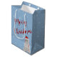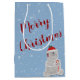 Urso polar com uma bengala de Natal sobre o padrão dos flocos de neve e um fundo azul