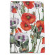 Um belo padrão apresenta um "campo" de papoilas roxas vermelhas e leves no cheio florescente em fundo branco