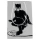 Este gráfico impressionante captura a Mulher-Gato em seu elemento, mostrando sua agilidade e dissimulação enquanto ela se prepara para agir. A ilustração é feita em negrito preto-e-branco, enfatizando a mania de seu traje e o movimento dinâmico de sua pose. A mulher-gato é representada agachada com um chicote enrolado ao seu lado, seu olhar focado e calculista. O efeito de tinta espalhada à sua volta acrescenta uma sensação de urgência e o ambiente caótico em que ela prospera. Esta trabalho de arte não só destaca o status icônico da Mulher Catarina como uma hábil ladra e anti-heroína, como também sua complexa relação com Gotham e seu cavaleiro negro. É uma poderosa representação de um dos mais enigmáticos e formidáveis aliados e adversários de Batman.