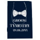 Bolsa de presente moderna, elegante, masculina, azul-marinho e branca para o noivo. Perfeita para lembranças de casamento. Você pode personalizá-la com seu nome e data.