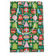 Um padrão de Natal na moda e moderno com ilustrações geométricas de ornamentos, meias, canas doces, presentes, árvores de Natal, flocos de neve, sinos e muito mais inspiradas. As cores incluem: verde, vermelho, branco, azul e rosa.