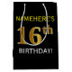 Sacola Para Presentes Média Preto, Faux Dourado 16º aniversário + Nome Persona