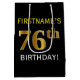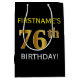 Sacola Para Presentes Média Preto, Faux Dourado 76.º aniversário + nome person