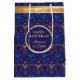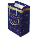 Primeira Vela de Hanukkah. Feliz Festival de Chanucá de Festas de Luzes Gift Bag Belty Cartão de Férias Judaico. Lindo fundo de Chanukah, Feriado Judaico, com símbolos decorativos tradicionais de Chanukah - sonhos de madeira (rodando), rosquinhas, hanukkiah menorah, velas, estrela de David e luzes brilhantes - padrão azul de marinho dourado hanukkiah. Festival de decoração de eventos de luzes em Hanukkah. Jerusalém, Israel. Artesanatos e suprimentos de terceiros > Suprimentos de enrolamento de presentes > Sacos de presentes com modelo de texto. Personalize-os adicionando nome ou texto de desejos. Design de dois lados. Personalizar