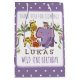 Ofereça aos seus hóspedes uma obrigado que você oferece quando você joga o safari da selva do seu bebê, um tema selvagem, uma festa de aniversário para o primeiro aniversario do seu bebê. Esses doces sacos de presente de festa de aniversário de safari da selva apresentam um tigre, macaco, elefante e uma girafa cercada por folheados botânicos com flores rosas e roxas contra fundo de bolinhas roxa e branca. Personalize com o primeiro nome do seu filho ou filha para um divertido Partido de primeiros aniversarios Selvagens.