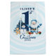 Celebre o mágico primeiro Natal do seu bebê com esta design de inverno emocionante! Apresentando um Papai Noel alegre, um bonitinho, um boneco de neve, um homem de pão-de-gengibre, presentes embrulhados, e uma árvore de Natal festiva, todos cercando uma marinho ousada "1rua" no centro. Personalize-o com o nome do seu filho e o ano para criar uma lembrança memorável para novos pais, avós ou a sua própria família. Esta ilustração encantadora de aquarela captura maravilhosamente a alegria, o calor e a maravilha do primeiro feriado do bebê Oliver (ou qualquer nome).