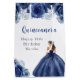 Esta bolsa de presente de aniversário da quinceanera apresenta uma bela princesa num vestido azul de bola marinho com arranjos florais. Isto é perfeito para uma festa de aniversário de quinceanera.