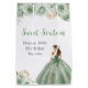 Esta doce bolsa de presente de 16 anos apresenta uma bela princesa em um vestido verde de bola sábio com arranjos florais. Isto é perfeito para uma doce festa de aniversário de dezesseis.