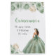 Esta bolsa de presente de aniversário da quinceanera apresenta uma bela princesa num vestido de bola verde sábio com arranjos florais. Isto é perfeito para uma festa de aniversário de quinceanera.