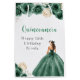 Esta bolsa de presente de aniversário da quinceanera apresenta uma bela princesa num vestido de bola verde-escura com arranjos florais. Isto é perfeito para uma festa de aniversário de quinceanera.
