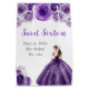 Esta doce bolsa de presente de 16 anos apresenta uma bela princesa em um vestido de bola roxa escura com arranjos florais. Isto é perfeito para uma doce festa de aniversário de dezesseis.