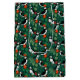 Padrão Puffin colorido e divertido com muitas flores e folhagem verdes. Cor verde e laranja vibrantes.