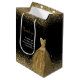 Sacola Para Presentes Média Quinceanera Dourada Vestido Faux Glitter