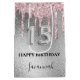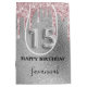 Elegante, clássico, glamouroso e feminino para uma Quinceañera, 15 festa de aniversário. Um fundo metálico falso prateado. Decorado com pinceladas de cintilação rosa pincelada, aparência de pingar tinta. Personalize e adicione um nome. Com o texto: Parabéns. O nome é escrito com um moderno estilo escrito à mão. O número 15 é escrito com uma fonte no estilo do balão.