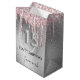 Sacola Para Presentes Média Quinceanera, relva prateada, goteja monograma rosa