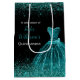 Sacola Para Presentes Média Quinceanera Teal Blue Dress Faux Glitter