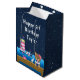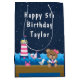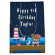 Essa bolsa de presente fofa e divertida pode ser personalizada com um nome ou título, como filha, neta, sobrinha, amiga etc. Apresenta um urso náutico de marinheiro num pavimento de madeira com uma gaivota e um caranguejo. Ao fundo há um farol rosa e branco, um pássaro giro em um veleiro, ondas oceânicas e um marinho azul estrelado céu noturno. O texto combina fontes em negrito e sem serifa para uma aparência na moda e moderna.