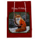 Sacola Para Presentes Média Raposa Vermelha Cura na Neve de inverno
