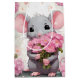 Sacola Para Presentes Média Rato com Buquê de Flor Rosa