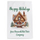 Esta bolsa de presente de Natal de corretor personalizado tem o nome personalizado da sua empresa real e a mensagem de Feliz Feriados na tipografia verde-chic juntamente com uma bela imagem de uma casa no inverno cercada por pinheiros. Sacos de presentes de férias profissionais para marketing de negócios imobiliários.