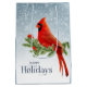 Sacola Para Presentes Média Red Cardinal Happy Holidays Gift Bag