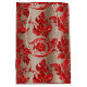Sacola Para Presentes Média Red Dourado Faux Velvet Damask Elegant