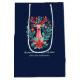 Sacola Para Presentes Média Reindeer de Natal Floral Azul Feriado Médio Gif