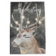 Uma rena macia brilhando na neve de inverno com galhadas brilhantes saco de presentes de Natal. Cena de inverno suave e serena.