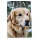 Sacola Para Presentes Média Retriever ouro Em Flocos De Neve