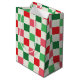 A vintage red, pink, green and cream grid patterned bright retro holiday gift bag
