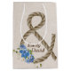 Símbolo de corda com um buquê de flor azul e nomes de casais em fundo texturizado macio para um presente de casamento ou aniversário